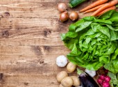 Warzywa świeże, ekologiczne bio na drewniane tła