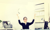 Młoda piękna kobieta biznesu zużycie w pracy