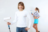 Młoda para z pędzlami razem