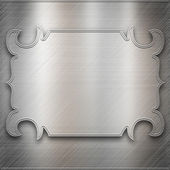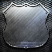 Metalowe shiel z ornamentem na stare drewniane tła. Kolekcja Vintage