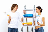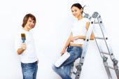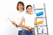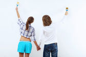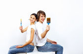 Młoda para z pędzlami razem