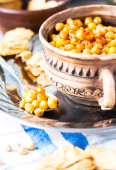 zapiekane ciecierzyca z przyprawami na tle rustykalnym, szczelnie-do góry