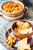 frytki z cienkich pita z przyprawami na tle rustykalnym