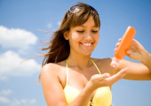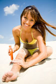 kobieta w bikini rozmaz krem ochronny