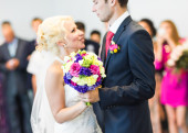 Młoda para ślubna ciesząca się romantycznymi chwilami
