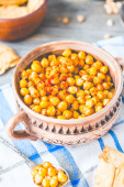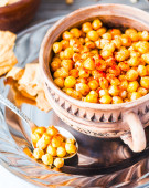 pieczona ciecierzyca z przyprawami na tle rustykalnym, papryka wędzona