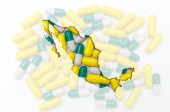 Mapa przeglądowa Oman z pigułki w tle dla zdrowia i
