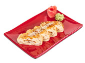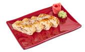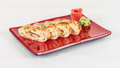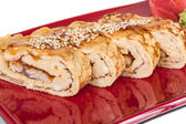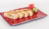 omlet maki sushi - rolki wykonane z wędzonego węgorza wewnątrz. zwieńczona