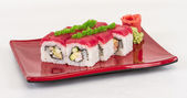 tradycyjne dania kuchni japońskiej - rolki maki z ogórkiem, krem c