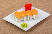 Maki sushi - rolki wykonane z kraba, awokado, ogórek, wewnątrz. świeży