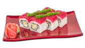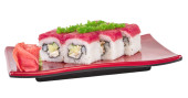Maki sushi - rolki wykonane z kraba, awokado, ogórek, wewnątrz. świeży