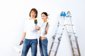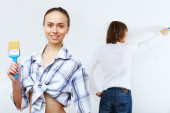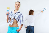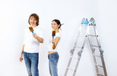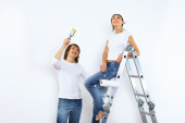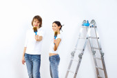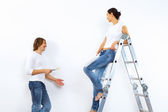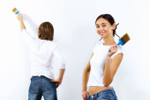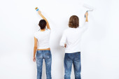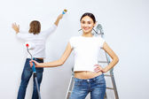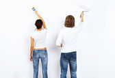 Młoda para z pędzlami razem