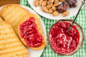 Zdjęcie "Deser słodkim twarogiem z dżemem malinowym w ceramicznej miski na drewnianym stole, miejsce na tekst" może być wykorzystywane do celów osobistych i komercyjnych zgodnie z warunkami zakupionej licencji Royalty-free. Obraz jest dostępny do pobrania w jakości wysokiej rozdzielczości do 5760x3840.