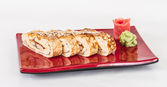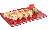 tradycyjne dania kuchni japońskiej - rolki maki z ogórkiem, krem c