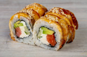 tradycyjne dania kuchni japońskiej - rolki maki z ogórkiem, krem c