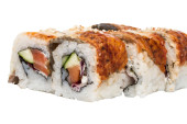 tradycyjne dania kuchni japońskiej - rolki maki z ogórkiem, krem c