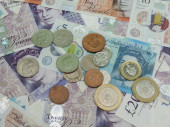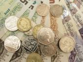 Funtach szterlingach (Gbp) banknoty i monety portret królowej Elżbiety II