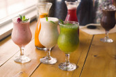 Zdjęcie "Inne trzy świeże koktajle na drewnianym stole" może być wykorzystywane do celów osobistych i komercyjnych zgodnie z warunkami zakupionej licencji Royalty-free. Obraz jest dostępny do pobrania w jakości wysokiej rozdzielczości do 5760x3840.