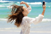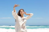 młoda kobieta robi selfie