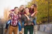 Zdjęcie "Two young couples spend time in the Park in early autumn" może być wykorzystywane do celów osobistych i komercyjnych zgodnie z warunkami zakupionej licencji Royalty-free. Obraz jest dostępny do pobrania w jakości wysokiej rozdzielczości do 5760x3840.