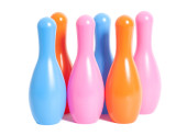 wiersz kolorowe zabawki z tworzyw sztucznych, kręgle
