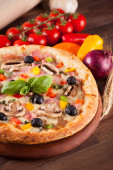 Zdjęcie "Smaczne smaczne pizza z warzywami" może być wykorzystywane do celów osobistych i komercyjnych zgodnie z warunkami zakupionej licencji Royalty-free. Obraz jest dostępny do pobrania w jakości wysokiej rozdzielczości do 5760x3840.