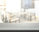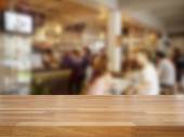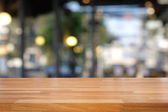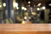 Pusty Stół drewniany i tło niewyraźne kuchnia