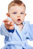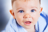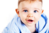 jedno dziecko dziecko o niebieskich oczach, na białym tle