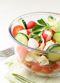 Sałatka z sałaty i ogórek, rukolą i pomidorami koktajlowymi