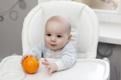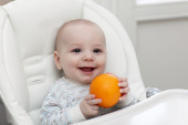 dziecko gryzie pomarańczowy