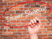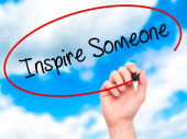 Ręką człowieka pisania zainspirować kogoś z czarnym markerem na visual sc