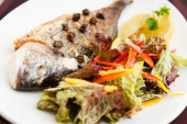 Zdjęcie "Ciepła sałatka z ryby dorado na talerzu" może być wykorzystywane do celów osobistych i komercyjnych zgodnie z warunkami zakupionej licencji Royalty-free. Obraz jest dostępny do pobrania w jakości wysokiej rozdzielczości do 5760x3840.