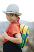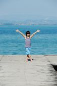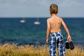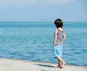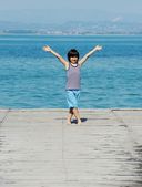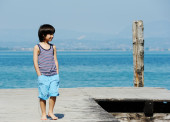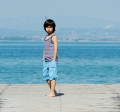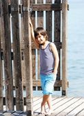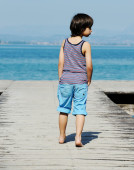 Mały chłopiec chodzenie na stacji dokującej
