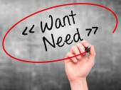 Człowiek w piśmie strony, chcę więcej! z czarnym markerem na wizualne ekranie