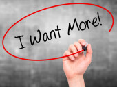 Zdjęcie "Człowiek w piśmie strony, chcę więcej! z czarnym markerem na wizualne ekranie" może być wykorzystywane do celów osobistych i komercyjnych zgodnie z warunkami zakupionej licencji Royalty-free. Obraz jest dostępny do pobrania w jakości wysokiej rozdzielczości do 5760x3840.