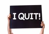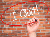 Człowiek w zapasie pismo I Quit! z czarnego markera na wizualne ekranie