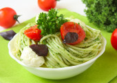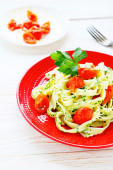 Zdjęcie "spaghetti z sosem pesto, pomidora i ser" może być wykorzystywane do celów osobistych i komercyjnych zgodnie z warunkami zakupionej licencji Royalty-free. Obraz jest dostępny do pobrania w jakości wysokiej rozdzielczości do 5760x3840.