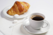 Zdjęcie "Rogalik i kawa. Francuskie śniadanie" może być wykorzystywane do celów osobistych i komercyjnych zgodnie z warunkami zakupionej licencji Royalty-free. Obraz jest dostępny do pobrania w jakości wysokiej rozdzielczości do 5760x3840.