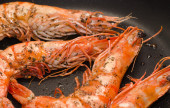 grillowane krewetki krewetki z soli płatków na drewno, makro