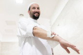 Starszy kucharz z wąsem
