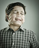Zdjęcie "Zabawny dwóch lat chłopiec z taśmy na jego twarzy" może być wykorzystywane do celów osobistych i komercyjnych zgodnie z warunkami zakupionej licencji Royalty-free. Obraz jest dostępny do pobrania w jakości wysokiej rozdzielczości do 5760x3840.