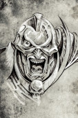 Zdjęcie "tatuaz sztuki, szkic fantasy Warrior, przyszłych rycerz" może być wykorzystywane do celów osobistych i komercyjnych zgodnie z warunkami zakupionej licencji Royalty-free. Obraz jest dostępny do pobrania w jakości wysokiej rozdzielczości do 5760x3840.