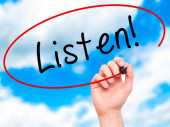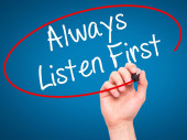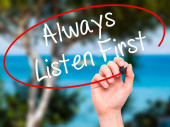 Człowiek w zapasie pismo zawsze słuchać pierwszy z czarnego markera wzrokowych