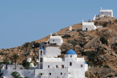 Wspaniały widok na miasto budynków w Ios Island, Grecja