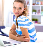 atrakcyjny dziewczynka kaukaski, siedząc na podłodze