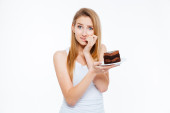 Zdjęcie "Zbliżenie wesoły całkiem młoda kobieta jedzenie czekolady" może być wykorzystywane do celów osobistych i komercyjnych zgodnie z warunkami zakupionej licencji Royalty-free. Obraz jest dostępny do pobrania w jakości wysokiej rozdzielczości do 5760x3840.