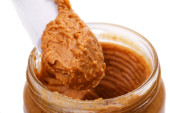 otwarty słoik masła orzechowego z łyżeczką