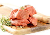 świeże surowej wołowiny z tymiankiem i przyprawy na pokładzie cięcia