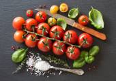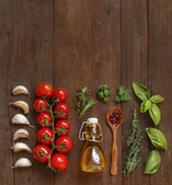 Makaron fettuccine surowego, warzyw, ziół i oliwy z oliwek