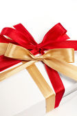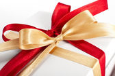 duży czerwony, złoty łuk na białym tle